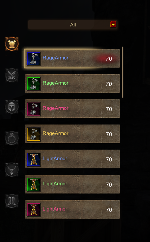 - Different colors indicate item quality.