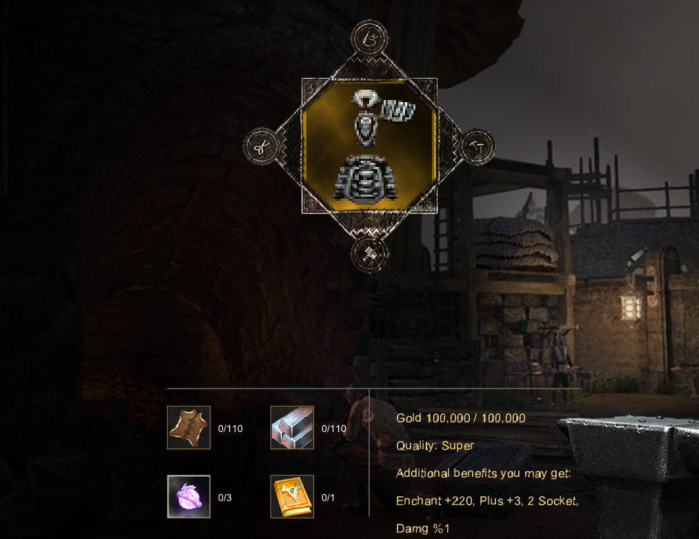 - Required materials (Skin, Iron, etc.)